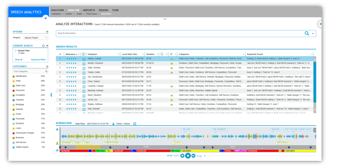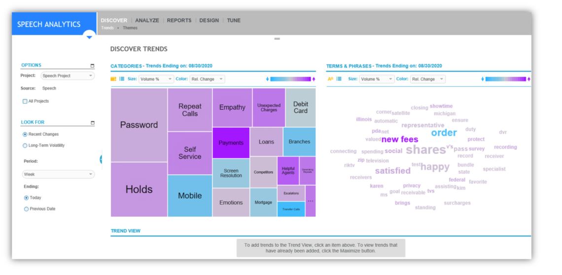 Verint Speech Analytics can provide sophisticated conversational analytics to automatically identify, group, and organize the words and phrases spoken during calls